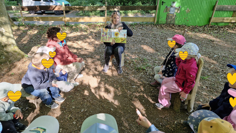 Durch Gewitterstimmung konnten wir die privaten Bienenstöcke nicht besuchen. Dies holen wir an dem nächsten Naturtag nach. Einen Honigkuchen konnten wir aufgrund von Waldbrandgefahr nicht im Feuer backen, das werden wir im Bistro im Kindergarten nachholen.