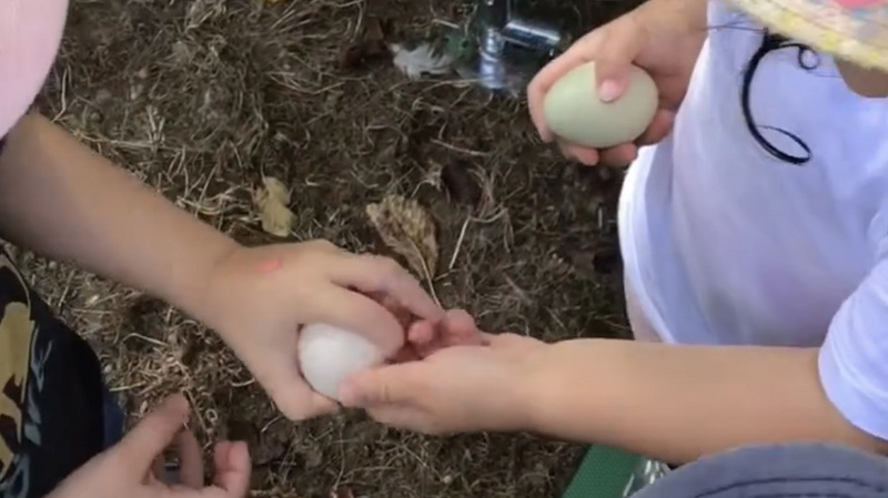 Die Kinder suchten die Eier und sammelten sie ein. Mehrmals täglich. Es gab richtig viele Eier.