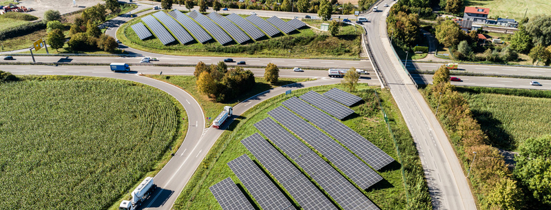Der Ausbau regenerativer Energien, insbesondere der Wind- und der Solarenergie bringt einen enormen Flächenbedarf mit sich. Die Landesregierung hat nun 2023 insgesamt knapp 260 mögliche Flächen entlang von Straßen ausgewiesen, die dafür genutzt werden können, ohne landwirtschaftliche Nutzflächen zu verlieren. 650 Straßenränder entlang der insgesamt 15.000 Straßen- und Autobahnkilometer in Baden-Württemberg sind daher auf ihre Eignung untersucht worden. 400 können etwa aufgrund bestehender Artenschutzregelungen nicht weiter in die Planungen einbezogen werden. Auf den geeignet erscheinenden Flächen können bis Mitte der 2020er Jahre etwas mehr als 122 Gigawattstunden Strom im Jahr gewonnen werden, vorausgesetzt es finden sich ausreichend Investoren und Handwerker. Das entspricht dem Strombedarf von 35.000 Drei-Personenhaushalten. Als besonders günstig gelten die etwa 200 sogenannten „Innenohren“, das sind die Flächen zwischen den Autobahnauf- und -ausfahrten. Die „Lustnauer Ohren“ an der B27 bieten Platz für Tübingens größte Photovoltaikanlage mit 2.880 Modulen. Ihre Errichtung dauerte nur acht Wochen, der Planungs- und Prüfungsprozess hingegen mehr als acht Jahre.