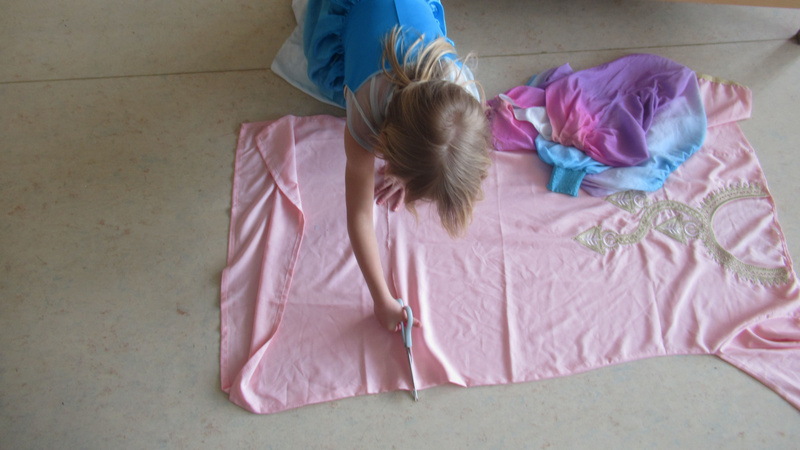 Mädchen gestaltet ihr Kleid nach ihren eigenen Vorstellungen.