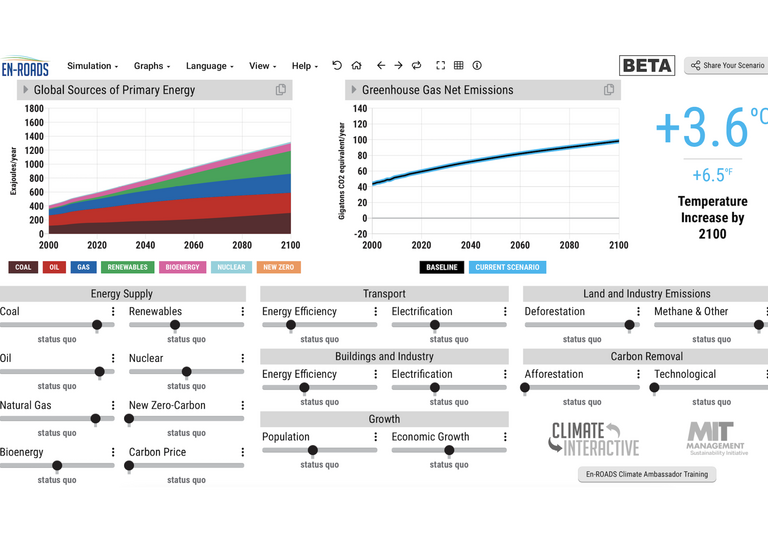En-ROADS bietet Nutzerinnen und Nutzern die Möglichkeit, eigene Szenarien zur Begrenzung der globalen Erwärmung zu erstellen.