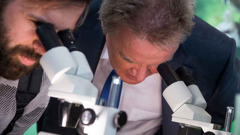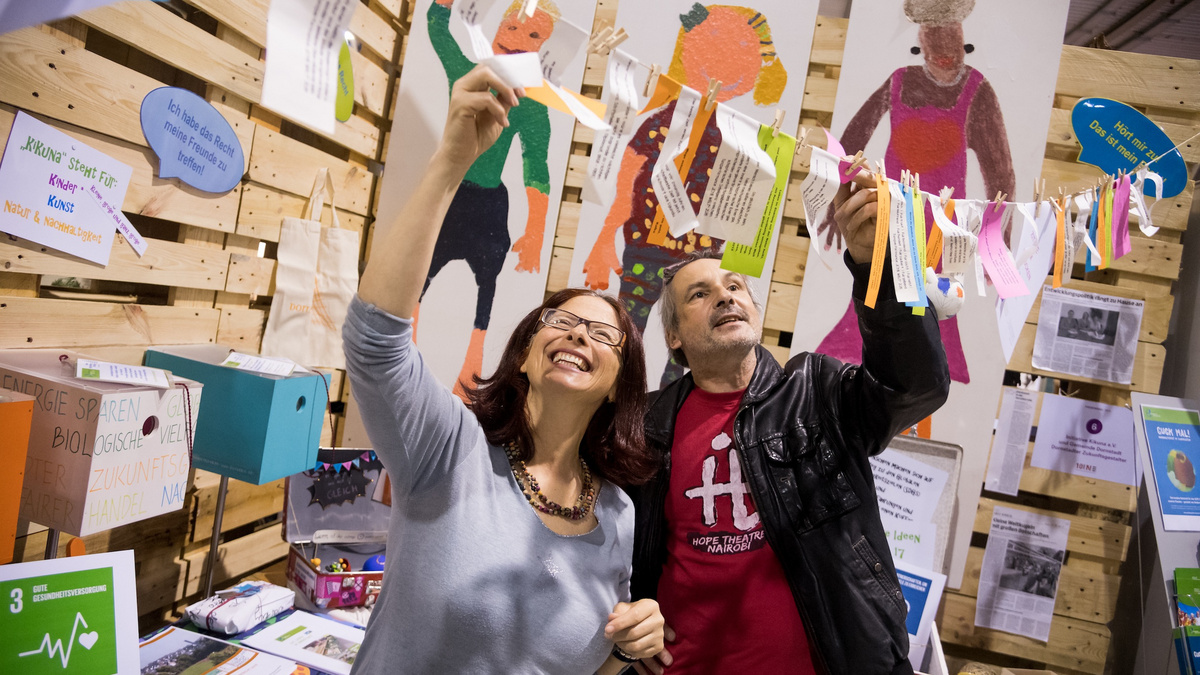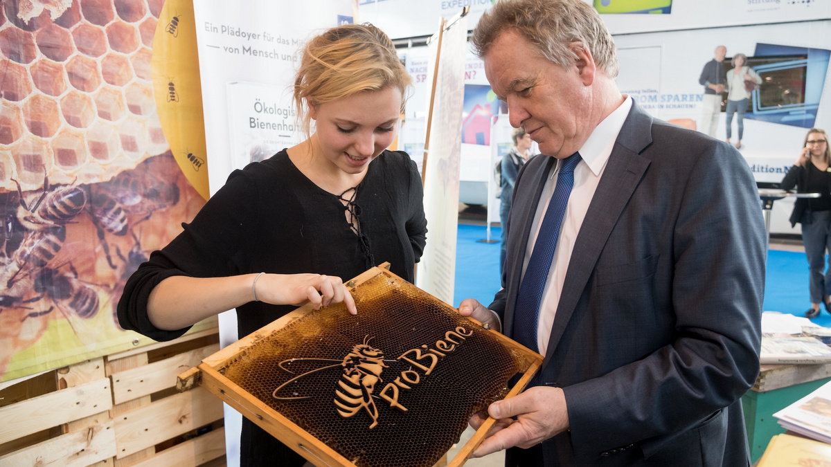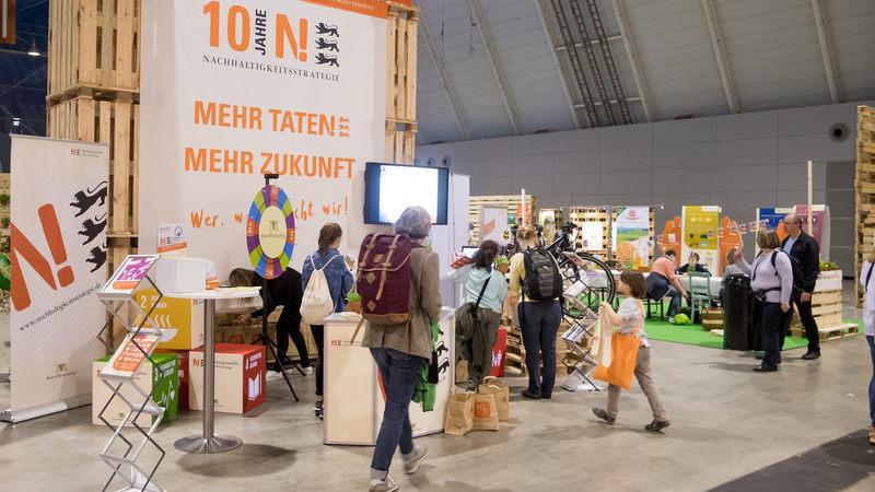 Am Eröffnungstag besuchte Umweltminister Franz Untersteller die Erlebniswelt und das vielfältige nachhaltige Angebot der zahlreichen Aussteller. Ralf Häussler vom Zentrum für Entwicklungsbezogene Bildung der Evangelischen Landeskirche in Württemberg (ZEB) und Sprecher der Handy-Aktion Baden-Württemberg moderierte die Eröffnungsfeier. Am Abend zeichnete Herr Minister Untersteller auf der Bühne eine von zwölf Monats-HeldeN!-Taten aus dem Nachhaltigkeits-Netzwerk zur Helden!-Tat des Jahres aus. Gewonnen hat die element-i Bildungsstiftung in Kooperation mit der Freien Dualen Fachschule für Pädagogik. Sie haben die Global Goals Aktionstage durchgeführt.