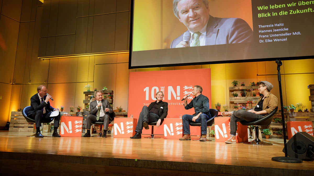 „Als Landesregierung haben wir uns vorgenommen, Nachhaltigkeit zum zentralen Kriterium unseres politischen Handels zu machen,“ sagte Umweltminister Franz Untersteller bei der Zukunftsdebatte, an der auch Schauspieler Hannes Jaenicke, Zukunftsforscher Dr. Wenzel und Jugendbeirätin Theresia Haitz beteiligt waren. In seiner Abschlussrede betonte Umweltminister Untersteller: „Dabei können wir nur gemeinsam mit den Bürgerinnen und Bürgern des Landes Antworten auf die drängendsten Fragen unserer Zeit finden. Wer, wenn nicht wir!“