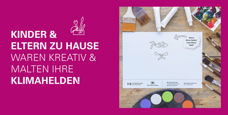Für Inspiration bei allen Teilnehmerinnen und Teilnehmern haben „Benni und Tatti – die Klima-HeldeN!“ aus unserem gleichnamigen Malbuch gesorgt. Ein Ausschnitt daraus steht hier zum Download (PDF) bereit. Darin befindet sich eine Vorlage, die Anreiz zum Weitermalen oder Basteln bietet. Das komplette Malbuch können Sie kostenfrei in unserem Heldenshop bestellen.